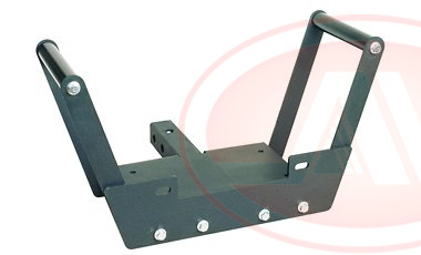 Площадка крепится в так называемый "американский" квадратный фаркоп (система со съемным шаром). Площадка позволяет устанавливать лебедку с тяговым усилием до 9 500 lbs (4 300 кг). Для подключения лебедки требуются длинные провода и разъемы. Такой же фаркоп специально для крепления переносной лебедки можно установить и спереди автомобиля, тогда применяемость лебедки существенно возрастает. Переносная лебедка удобна в том случае, если владелец редко ей пользуется, она не перегружает автомобиль и не подвергается воздействию окружающей среды.